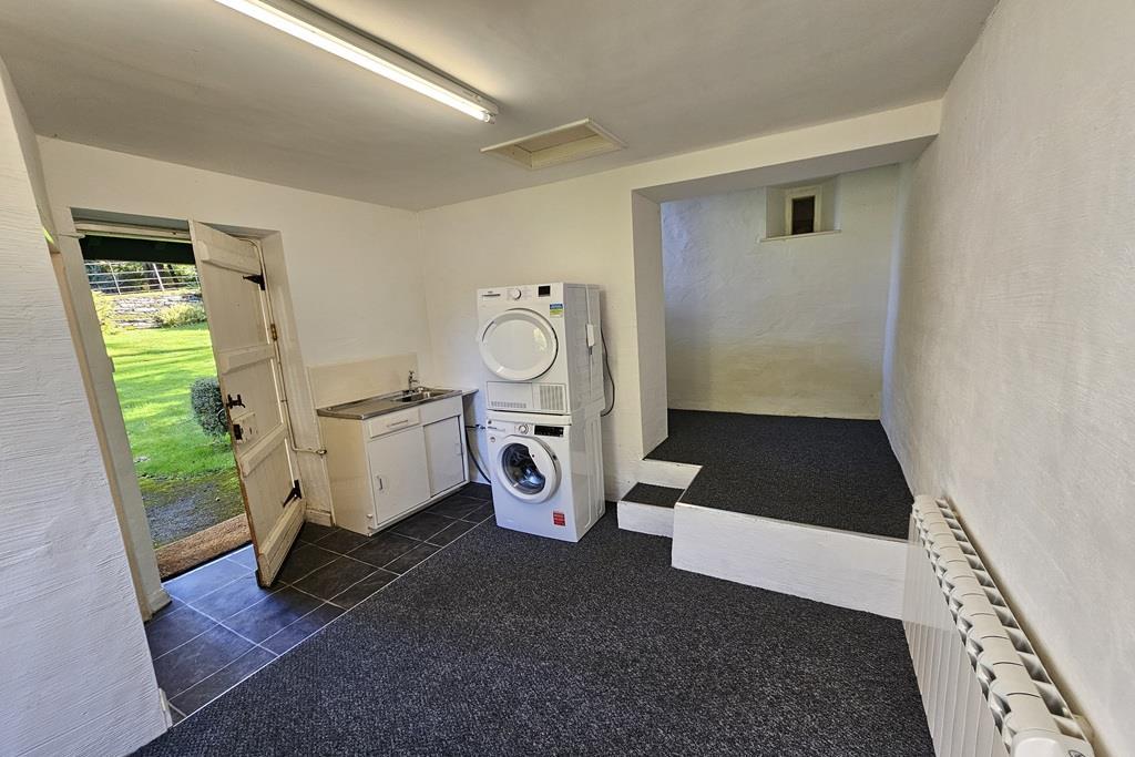 Across the entrance hallway is a Lounge, which runs the full depth of the property. Bright and airy with windows facing 3 directions, a window seat looking towards the Old Man of Coniston, plus multifuel stove.